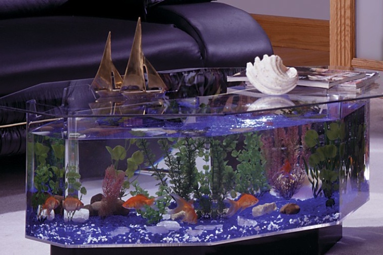 O surgimento de novos tipos de vidro temperado resistente ao impacto e polímeros transparentes permite que os projetistas criem incríveis tipos de móveis para o interior. Não ignore os fabricantes e aquaristas. Agora não é necessário esconder a embarcação com o peixe no canto no meio-fio ou instalá-lo ao longo da parede. Você pode ver o mundo subaquático pitoresco bem no meio da sala, se você comprar para sua casa ou escritório um aquário de mesa de café incomum e muito interessante. Vamos discutir como essa novidade é prática e como é difícil cuidar dos peixes em um tanque com uma forma tão original.