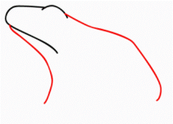 - Começando pelos contornos auxiliares delineados anteriormente, adicionamos as pernas traseiras.