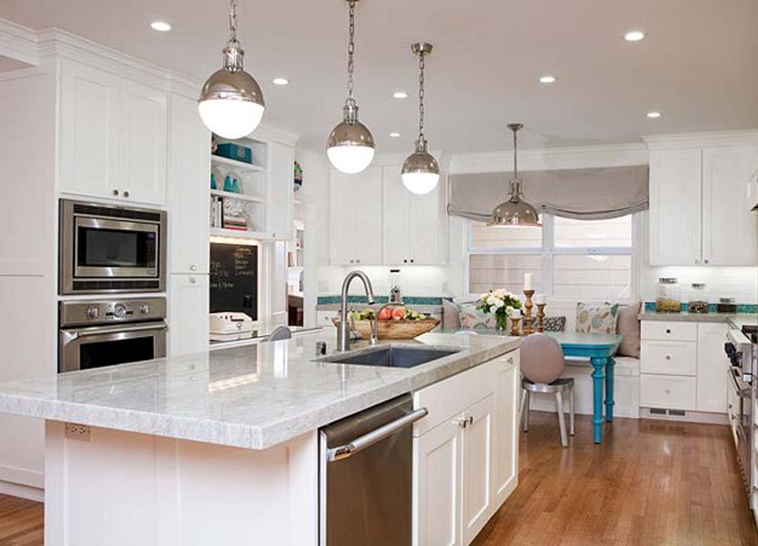 O principal segredo da boa iluminação na cozinha é um multi-nível, em cada área funcional deve haver uma lâmpada. Luminárias de teto para a cozinha devem ser combinadas entre si - uma iluminação embutida na área de trabalho, uma lâmpada pendurada acima da mesa de jantar, modelos de parede na área do canto suave e ao lado do local de descanso.