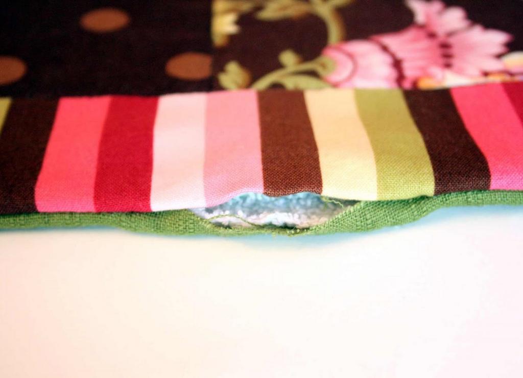 - Recorte de tecidos coloridos 3 retângulos de cores diferentes para que, depois de combinados, tenhamos um retângulo de 20x24 cm. Gastamos juntos e suavizamos as sobremesas do lado errado.