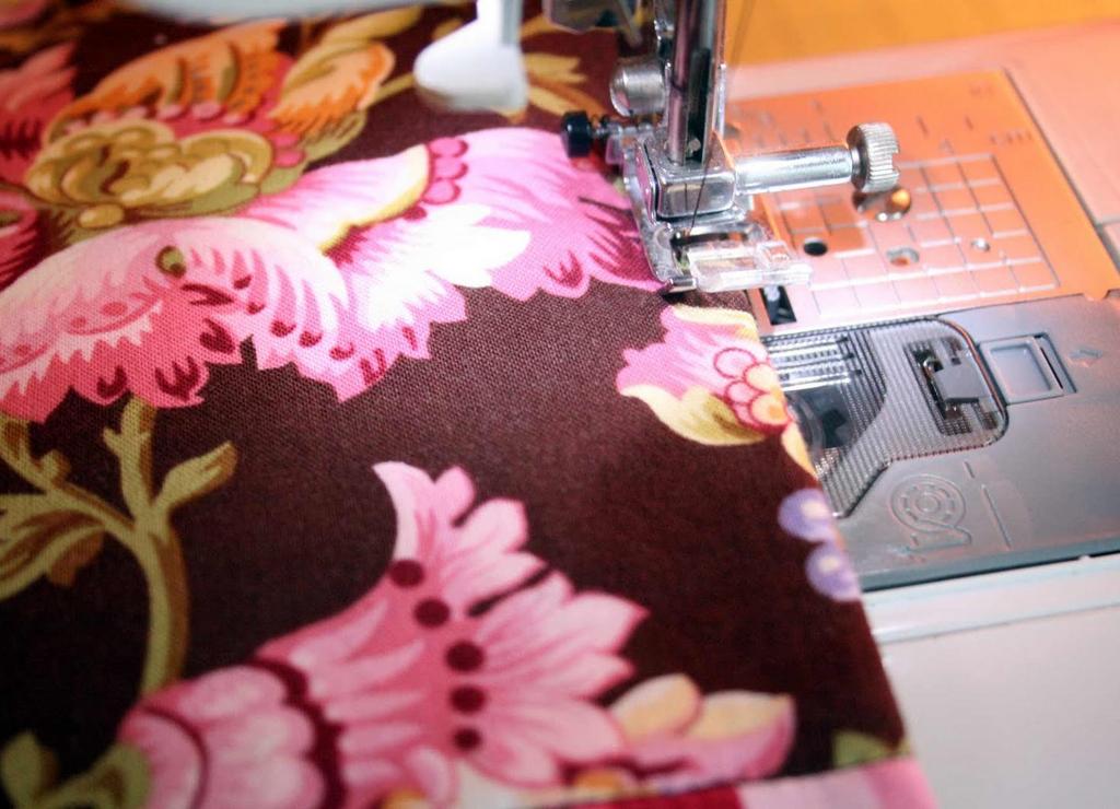 Você precisará de peças de cores contrastantes, uma toalha velha, 12 cm de trança e acessórios de costura.