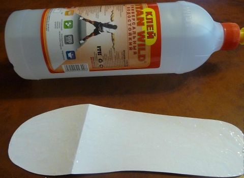 - Nós aplicamos uma pequena palmilha no papel ondulado e recortamos. Damos às palmilhas uma forma curva, usando um recipiente com cola. Após a secagem, as palmilhas endurecem graças a uma camada significativa de cola.