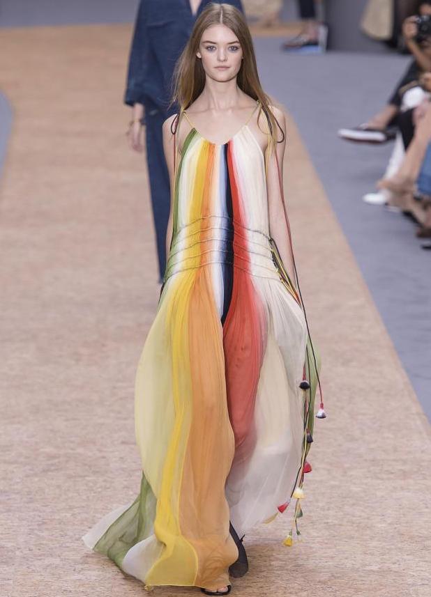 - O estilo étnico envolve vestidos, sarafans e túnicas em uma faixa colorida brilhante (Tommi Hilfiger) ou roupas de estilo marroquino. Com estampa floral ou geométrica em tons branco-verde-preto (Mara Hoffman). Os estilos são muito diferentes. O mais vividamente apresentado este tema em seu show.